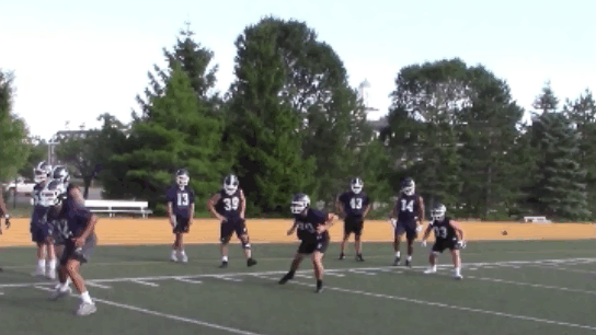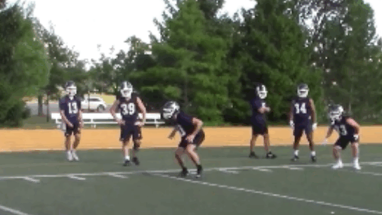 The clip above shows a group of LBs working their stance and their initial “Read Shuffle”. This would be their first step versus an Inside Zone play in that direction.