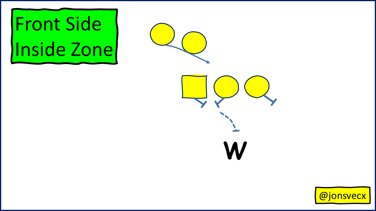 Remember, the Running Back is also a part of the Read. One picture could have the RB press the Front Side, and a different picture could have the RB take the handoff and bend it back. Your Linebackers need to know how to react to both pictures.