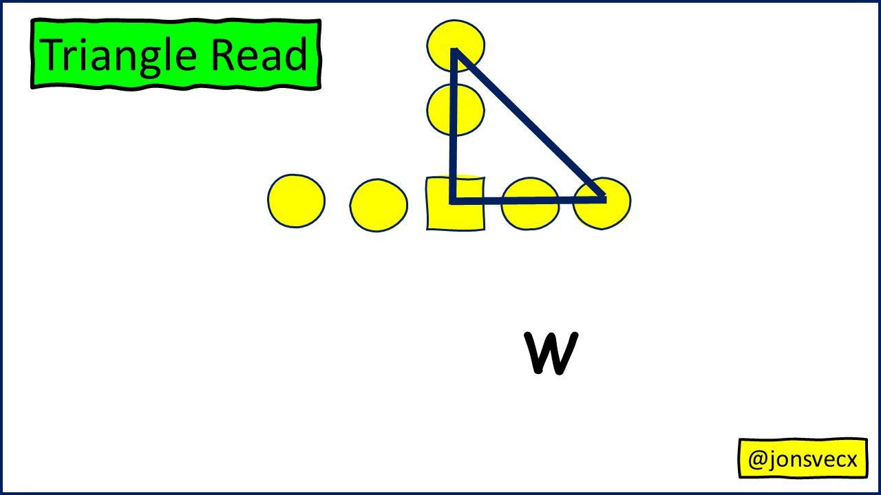 Simply put, the Triangle Read is a way to read certain Offensive Linemen through to the Running Back/Quarterback Mesh.