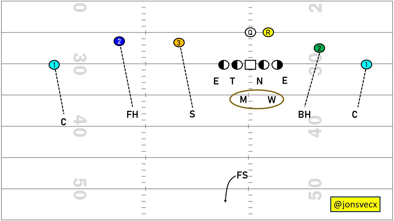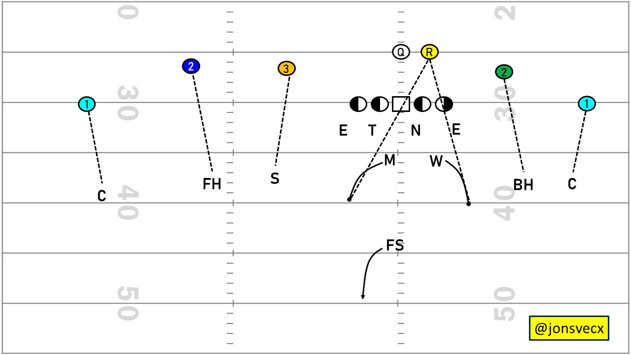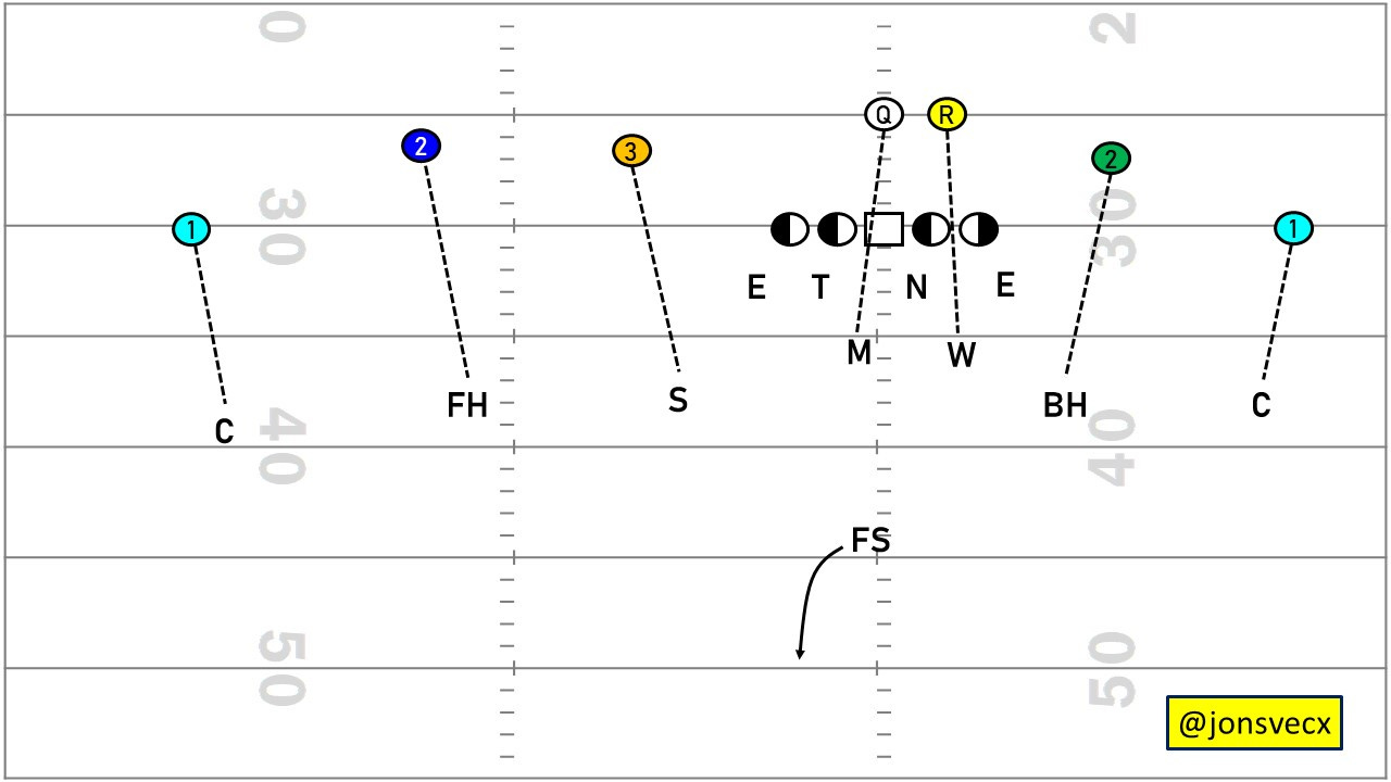 For the purpose of today’s article, we will focus on Cover 1 against a one-back set.